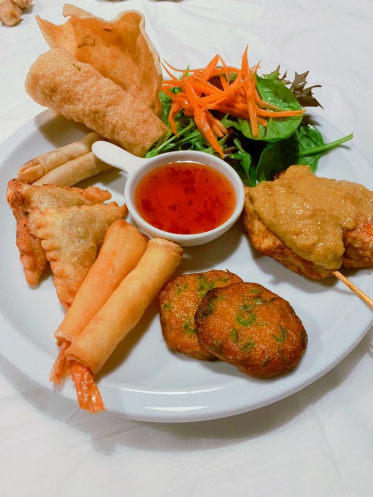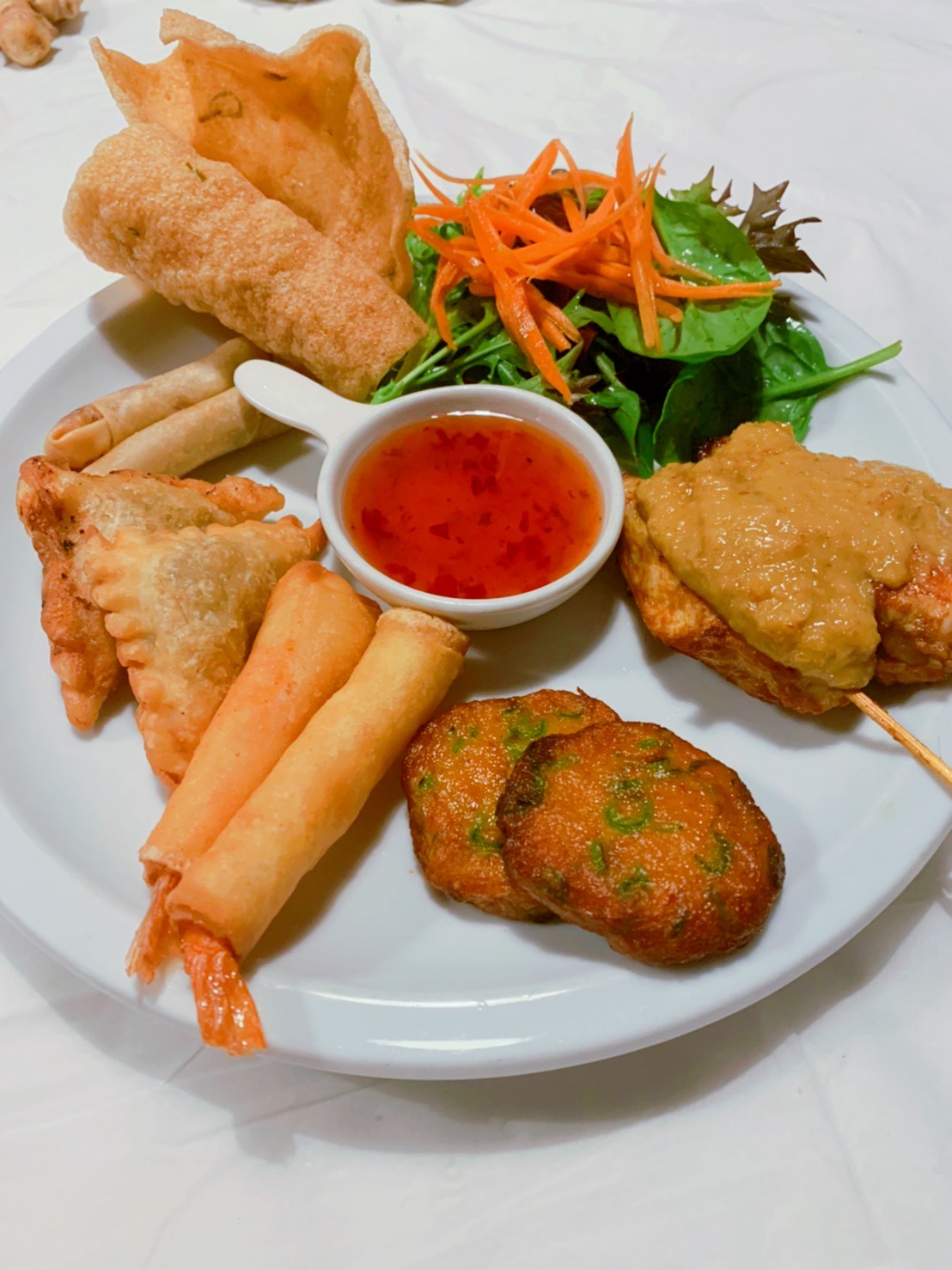 Mix Entree Kao Pud Por Peia Curry Puff Peek Gai Tod Roti & Satay Sauce Lamb Massaman Nam Sod Gang Keow Warn Pud Grapow Gang Massaman Goong Suki Plan Neung See Ewe Imperial Prawn Rolls Tom Khar Gang Panang Deep Fried Tofu Pud Preaw Wan Pad Thai Gang Ped Yang